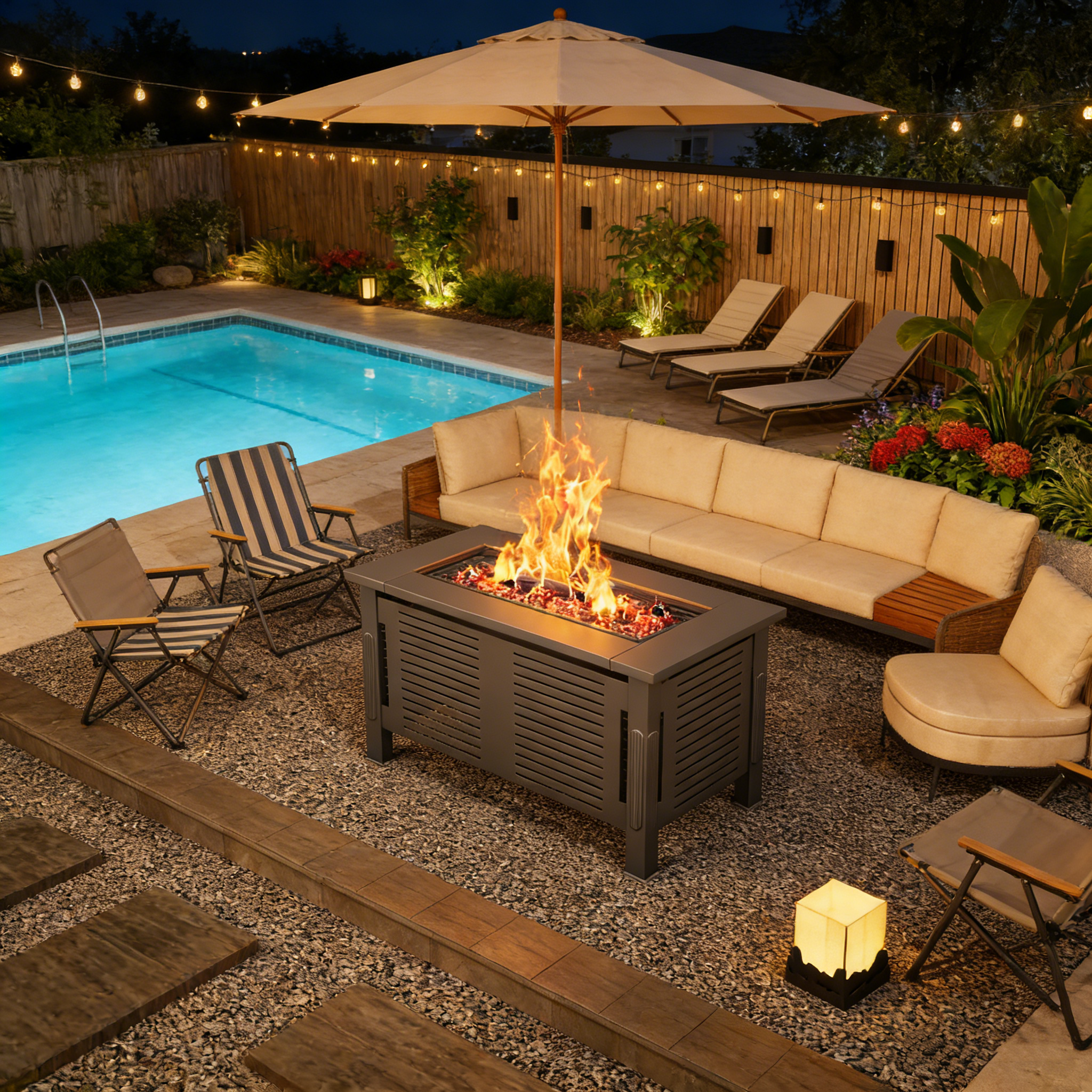 YODOLLA Fire Pit Table, Firepit Outdoor Table, 43 Inch, Black