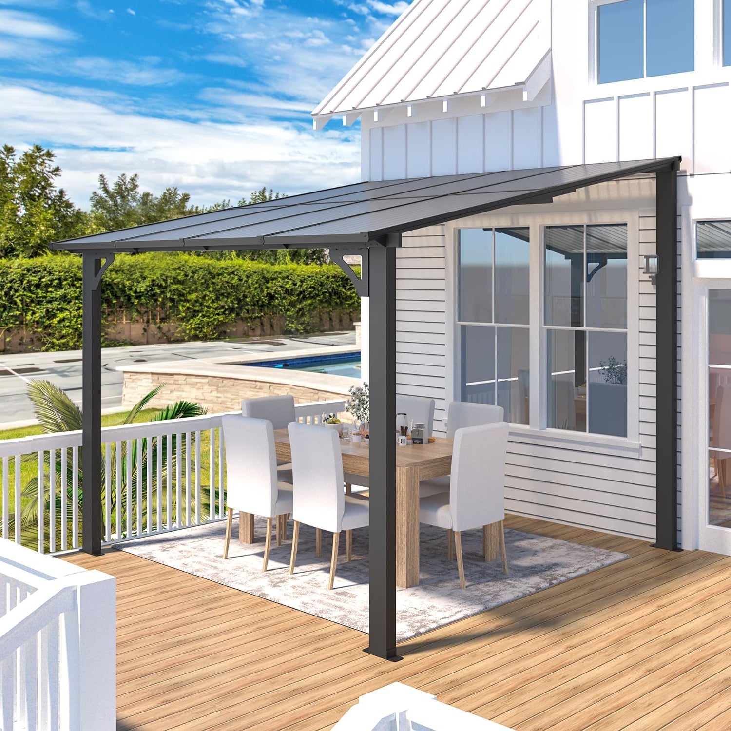 YODOLLA Pergola 10'x8' Hardtop Wall-Mounted Lean to Gazebo for Patio, Dark Grey