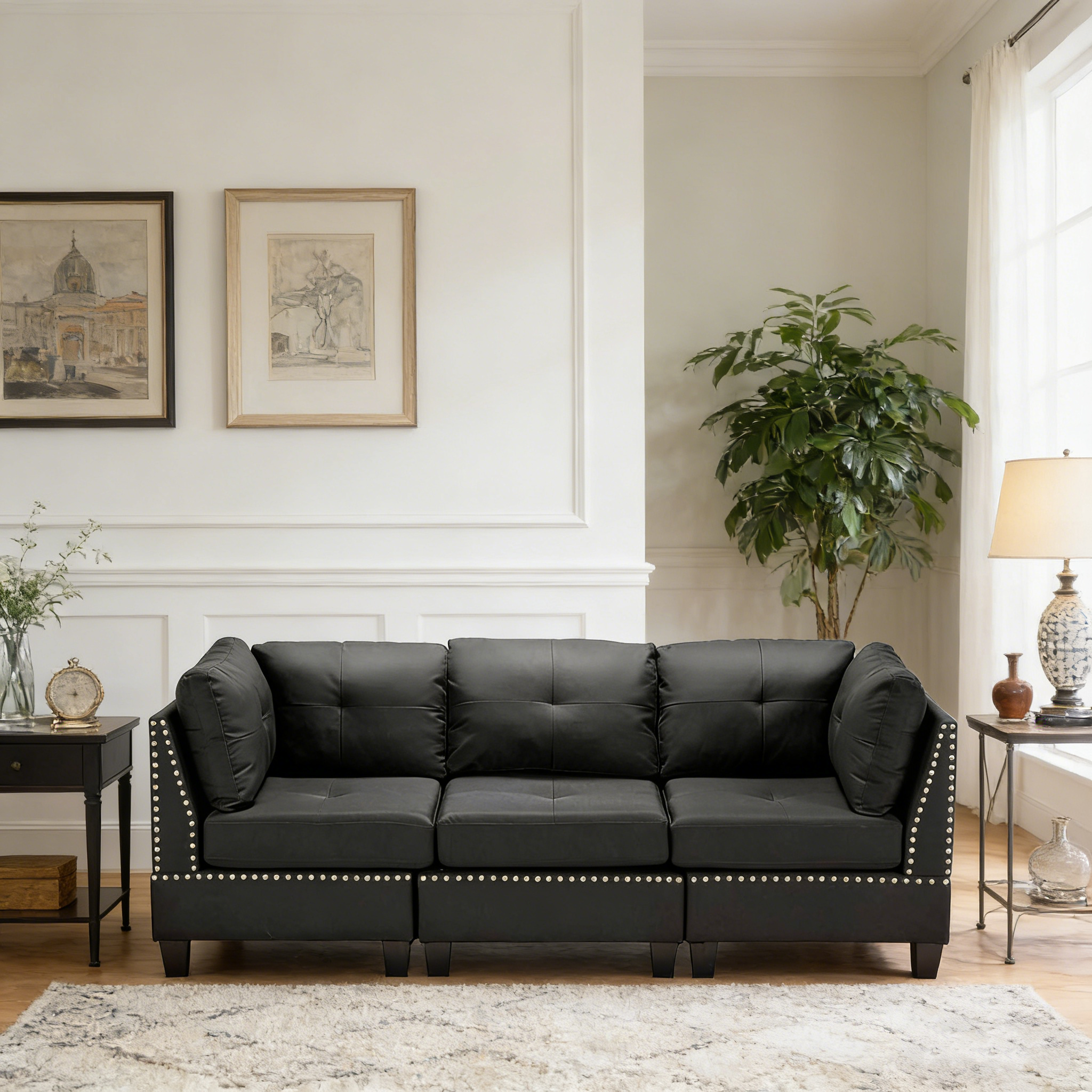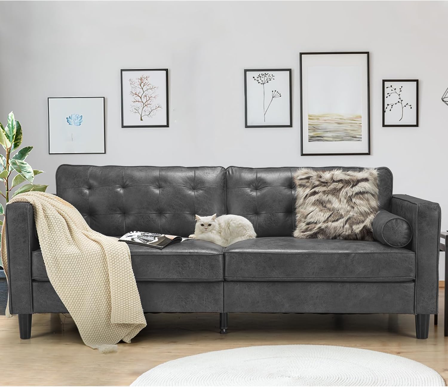 High-density cushions and faux leather deliver softness, durability, and full-body support.