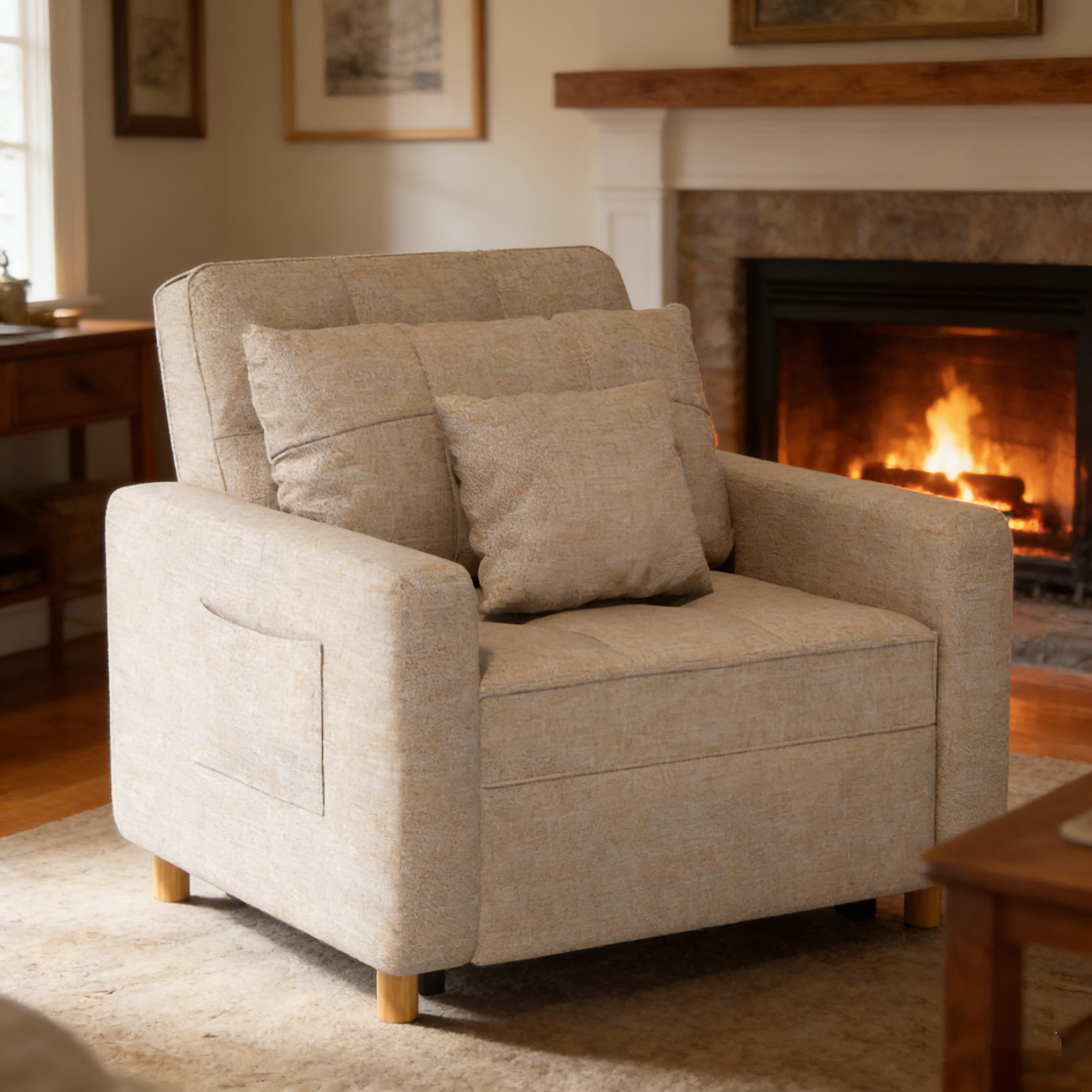 YODOLLA 36" Convertible Chair Bed, Beige
