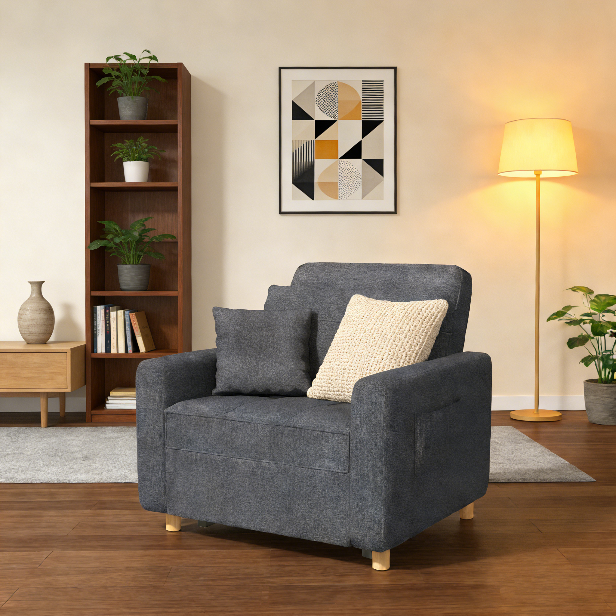 YODOLLA 36" Convertible Chair Bed, Dark Gray