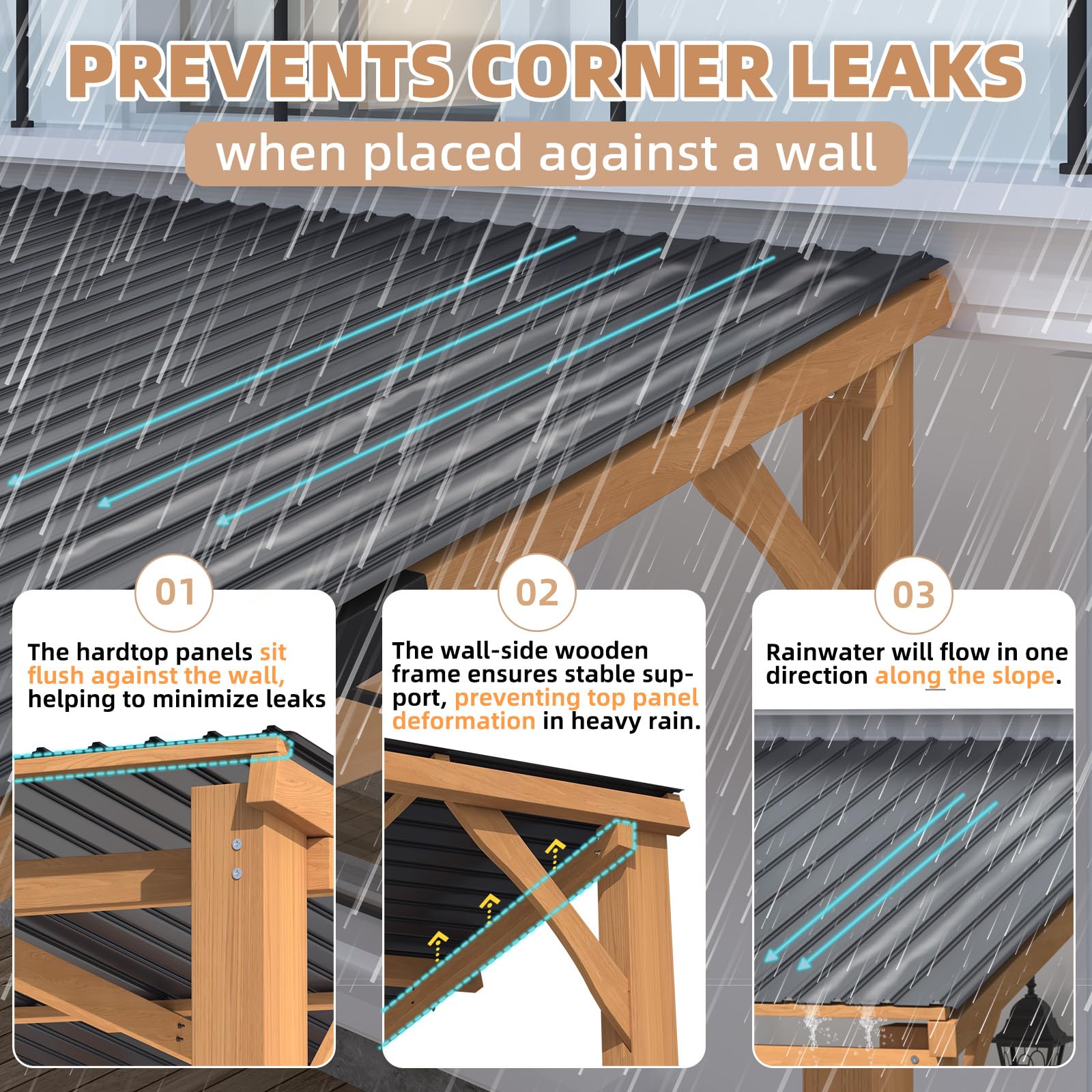 This heavy-duty hardtop pergola gazebo delivers reliable outdoor protection in all seasons. Engineered to withstand 70 mph winds, 20-inch snow loads, and heavy rain, it features a reinforced frame, sloped waterproof roof, and seamless wall fit for superior durability. Covering 100 sq. ft. of UV-protected shade, this wood gazebo pergola is ideal for patios, backyards, or gardens. With easy installation, professional support, and all-weather performance, it offers a truly worry-free outdoor living solution.