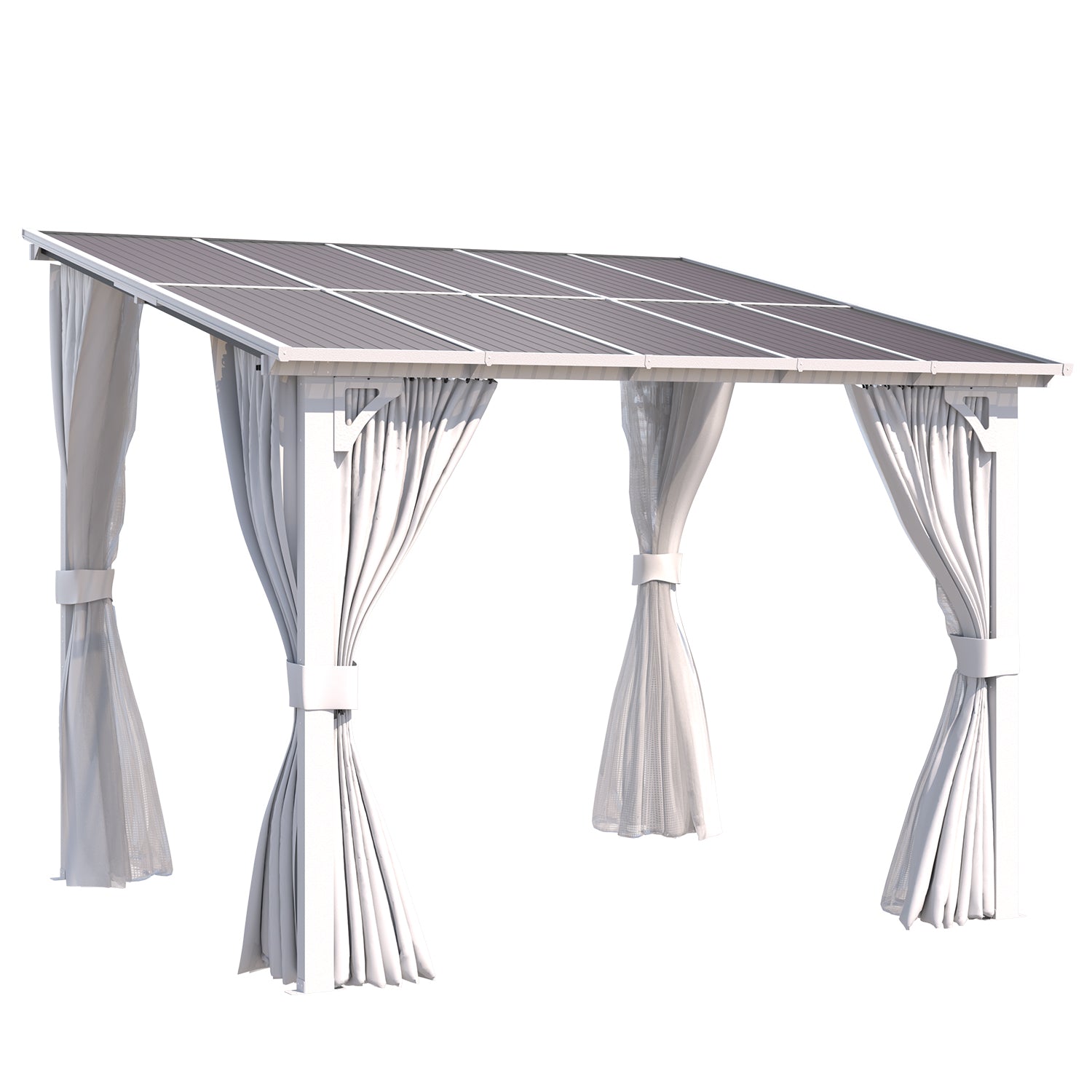 YODOLLA 10'x8' Outdoor Lean to Gazebo Pergola with Curtain and Netting for Patio, White