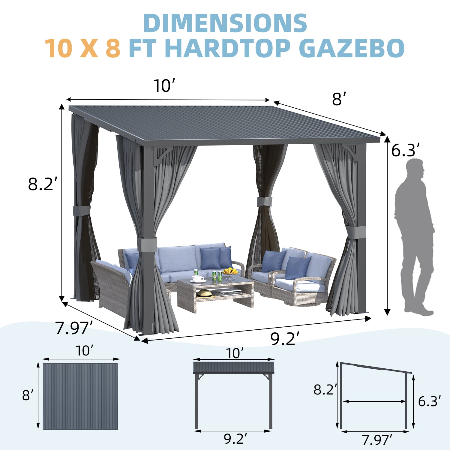 • Worry-Free Experience: We stand behind our gazebo 100%. Not only do we provide maintenance and replacements, but our professional team is available 24/7 to answer any questions about installation, usage, and more.