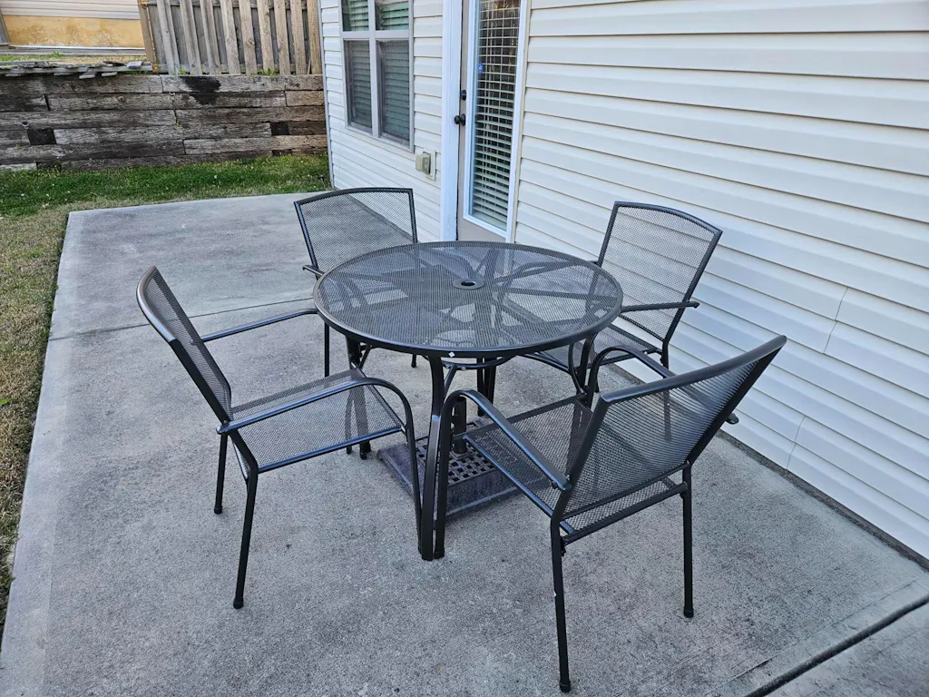 A: Yes! Our 5-piece metal patio dining set is crafted using advanced technology and precise measurements, ensuring the table and chairs sit firmly without wobbling. Each leg is equipped with adjustable screws to maintain perfect balance even on slightly uneven patios, decks, or lawns.
