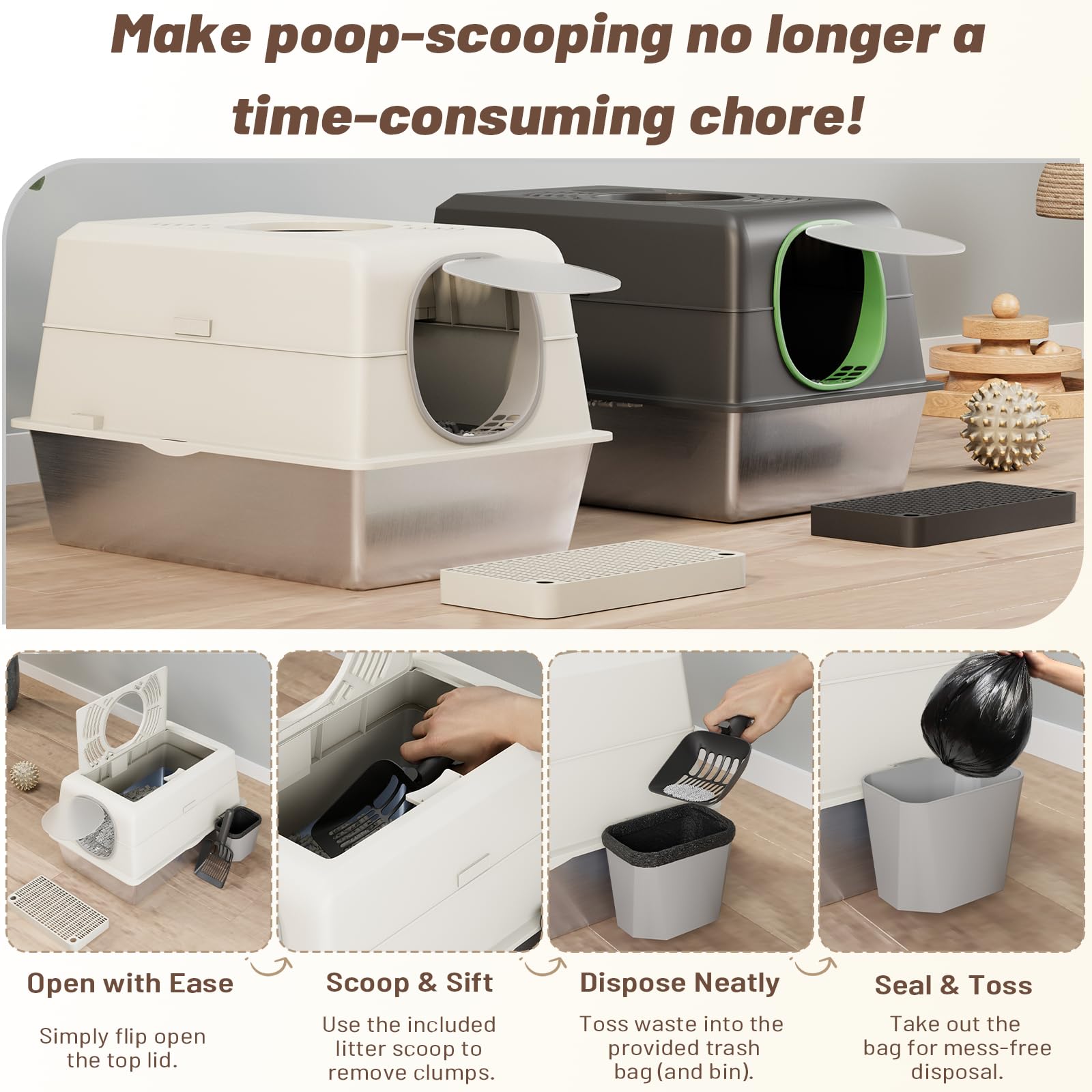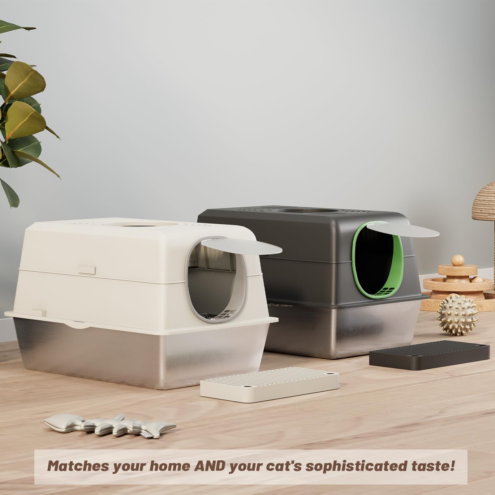YODOLLA extra‑large enclosed stainless steel cat litter box enclosure with lid — durable, odor‑reducing litter solution that keeps spaces tidy and easy to clean.