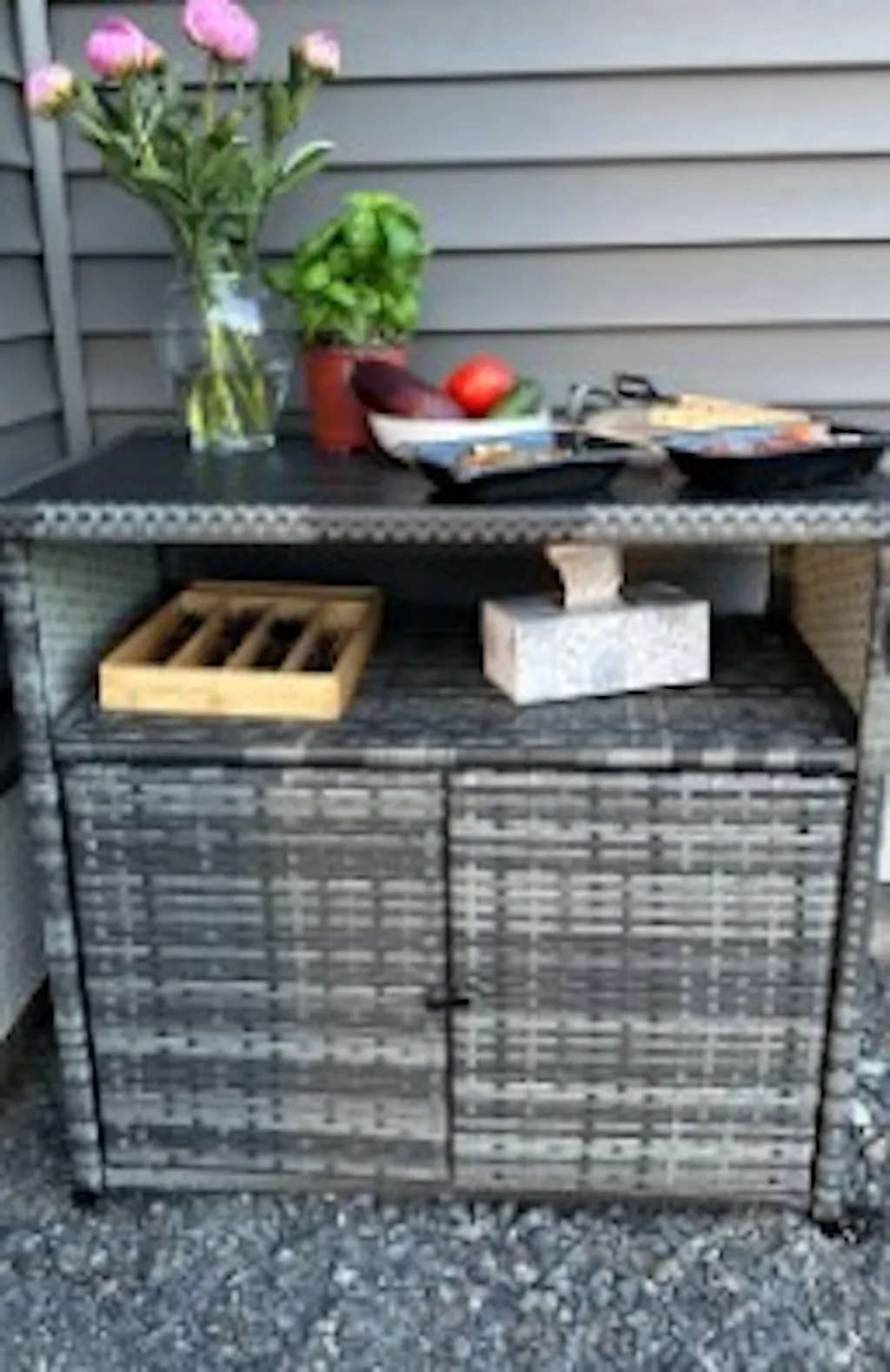 I’ve had this grill cart for a few weeks now, and it’s been perfect for my outdoor cooking setup. The shelves offer plenty of storage for all my grilling tools, and it’s so easy to move around wherever I need it. The wicker design adds a nice touch to my patio, and the build quality is solid. Assembly was a breeze, and it’s been working great for all my BBQs. I’m really happy with this purchase!