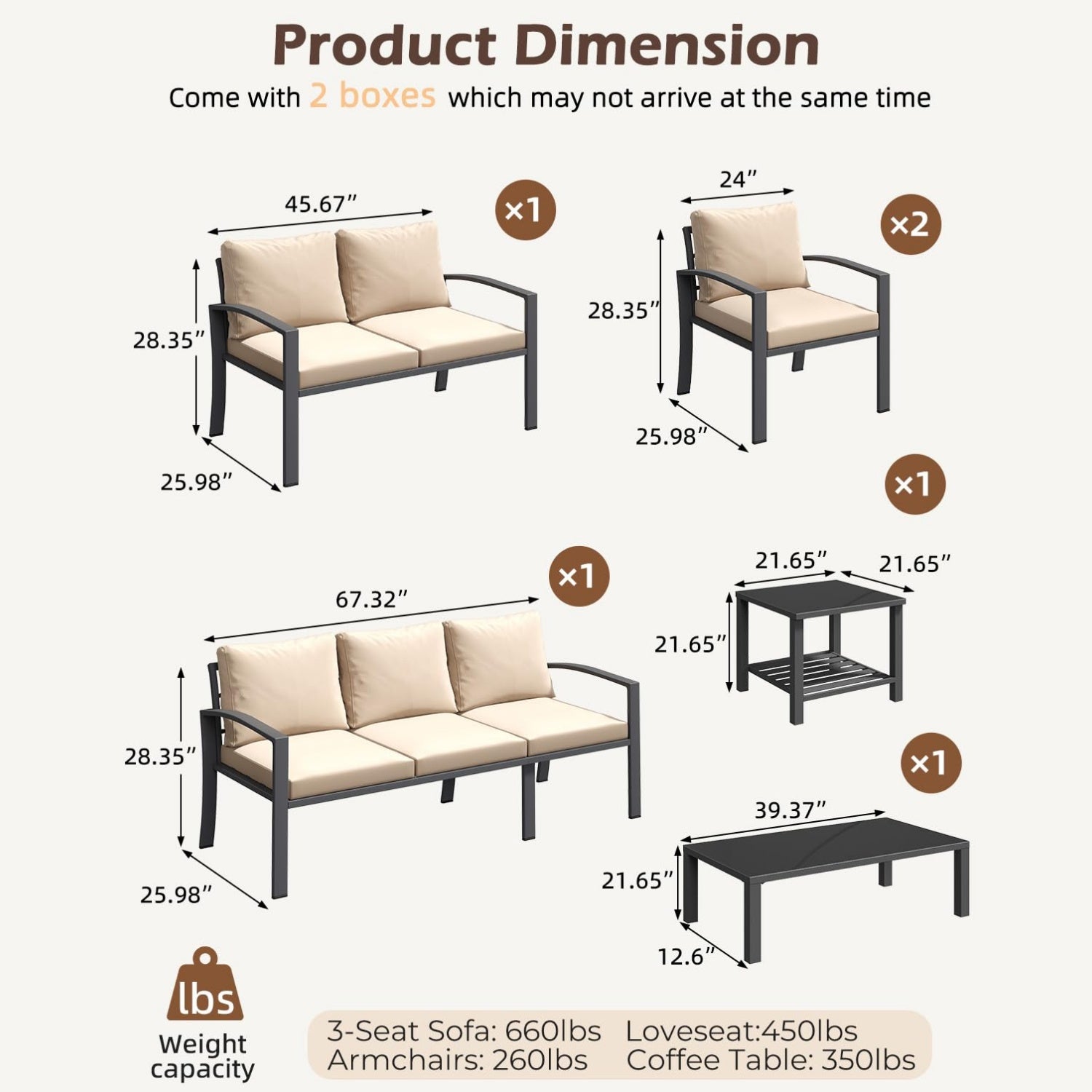 • 【Ergonomic Deep-Seating Design】Designed for outdoor conversation relaxation, this Patio Furniture Set offers 24 in seat width and 22 in deep seat, perfectly fitting adult body posture for full leg support. The spacious, open structure lets you lounge, curl, or stretch freely, combining sturdy yet lightweight iron construction for a cozy backyard oasis
