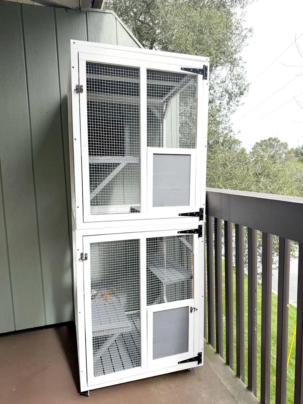• 🐈【Functional Design for Use】Measuring 31.47" x 31.5"x 70.9", this catios for cats outdoor patio is thoughtfully designed to fit seamlessly into any environment. It includes three jumping platforms, one snug resting box, a removable floor for effortless cleaning, two lockable doors, and two small access doors for added convenience. The waterproof asphalt roof ensures your pets stay dry during rainy weather, making it suitable for both indoor and outdoor use. This carefully crafted catio outdoor cat enclosure window is the ultimate retreat for your furry friends, no matter where they are!