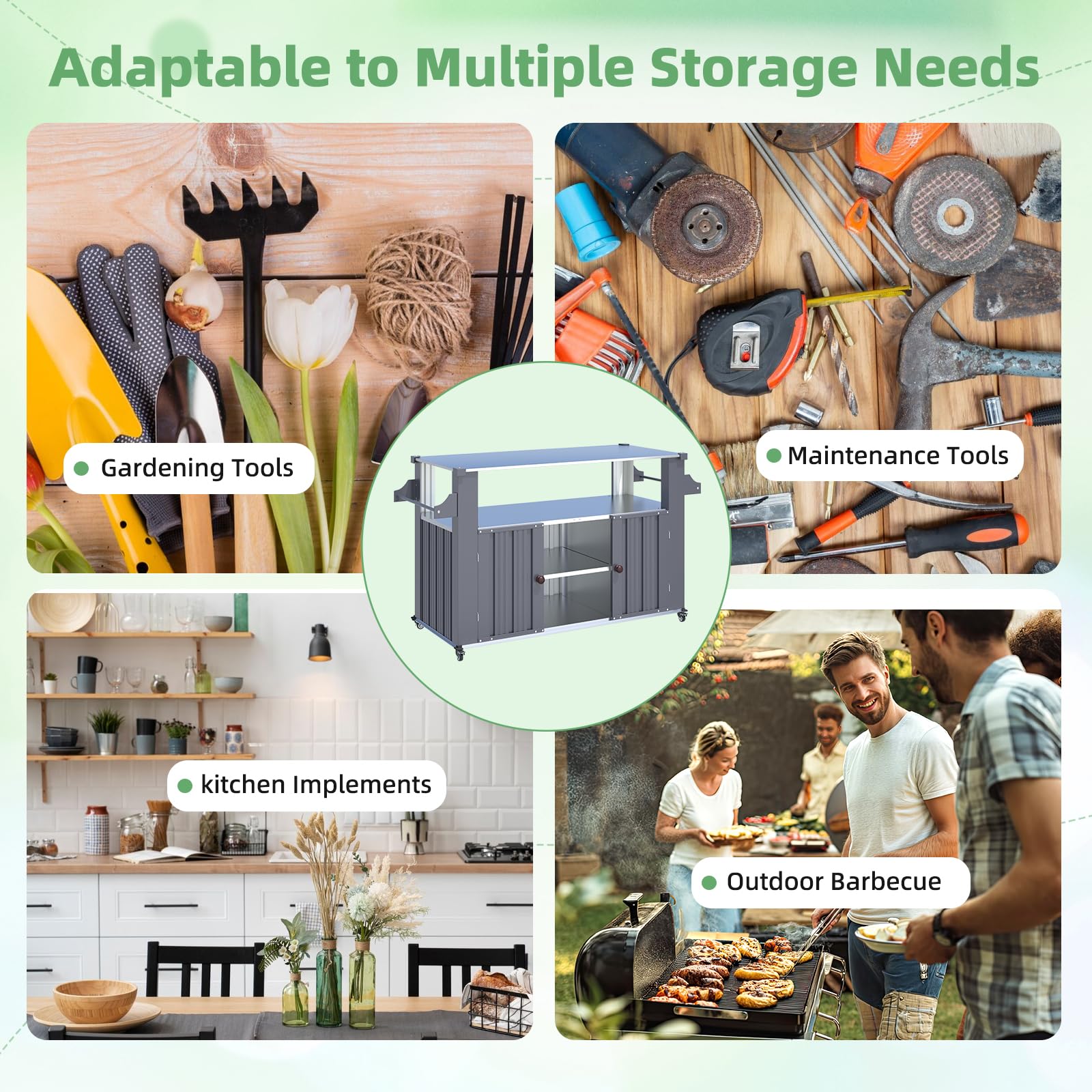 YODOLLA Outdoor Grill Table Cart — sturdy prep station with wheels, storage shelves, and durable surface. Ideal for backyard BBQ and outdoor cooking prep.