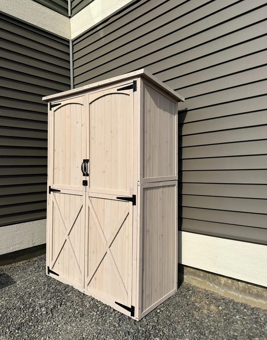 A: Definitely. The double door shed design includes metal locks and magnetic closures, delivering both security and ease of use. It’s a great option for safely storing outdoor tools and household items.