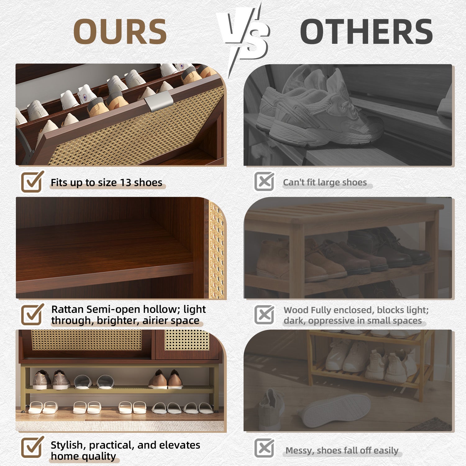 Rattan shoe cabinet with 3 flip‑down drawers — compact, stylish storage to keep shoes organized and hidden. Ideal for entryways, closets, or hallways.