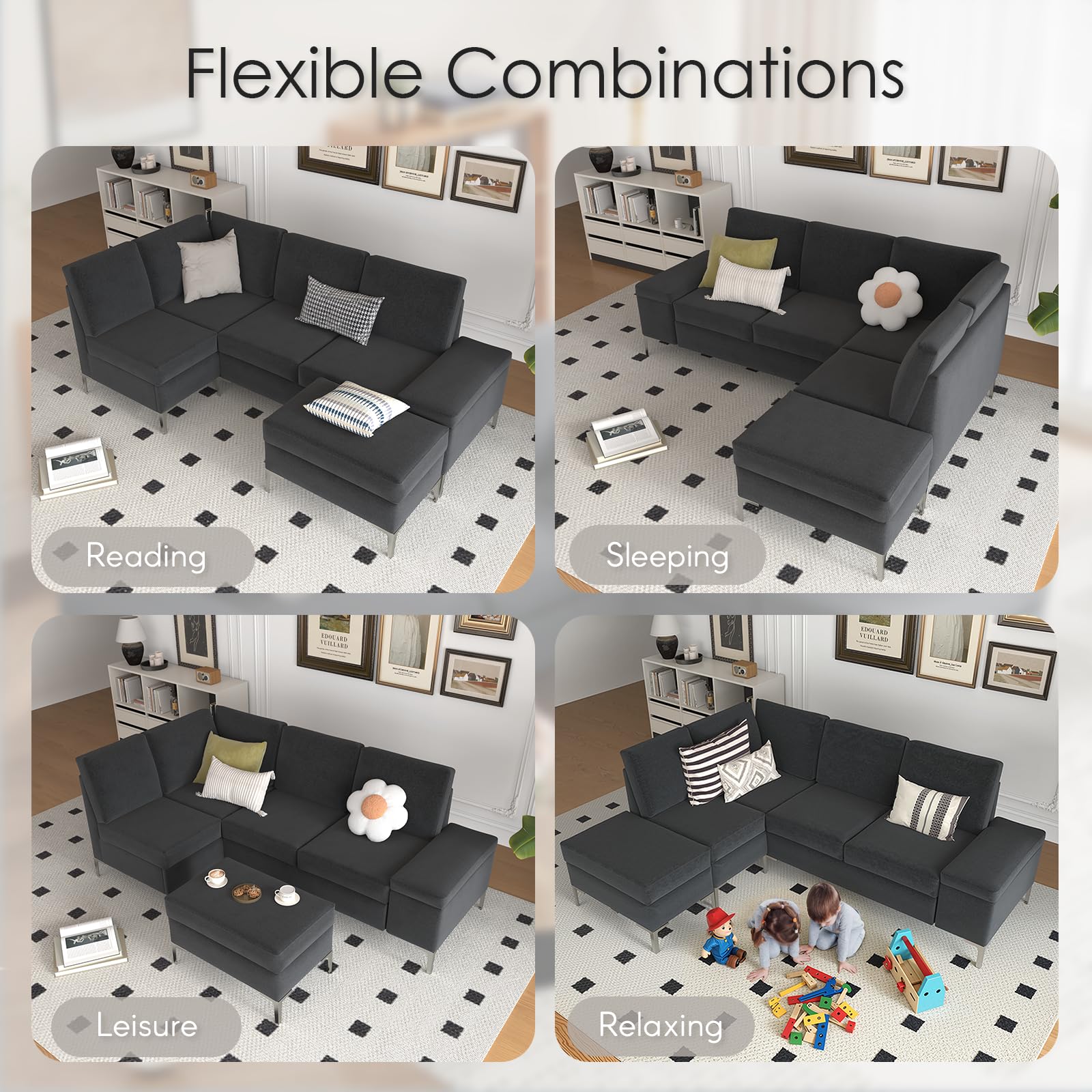 YODOLLA convertible sectional couch with ottoman — versatile corner sofa with armrest storage. Ideal for living rooms, saving space and adding cozy seating.
